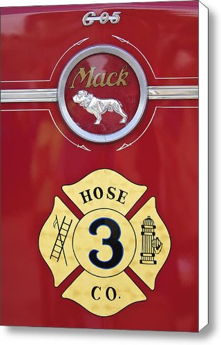 1966 MAC C Model Open Cab Fire Truck Emblem Canvas Print / Canvas Art - Artist Jill Reger