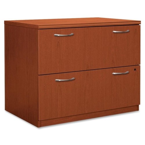 HON Park Avenue Lateral File - 2 Drawer - Tri-oval Edge - Particleboard - Henna Cherry?HON Park Avenue Lateral File - 2 Drawer - Tri-oval Edge - Particleboard - Henna Cherry 36" wide x 24" deep x 29" high henna cherry finish Park Avenue Laminate Collection Two Drawer Lateral File offers an upscale design with clean, uninterrupted lines, tri-oval edge detail and vertically matched woodgrain. Top is made of easy-care abrasion- and spill-resistant thermal-fused laminate over durable, 1-1/8" thick, solid-core, high-performance particleboard. File drawers operate on steel ball bearing suspensions for smooth, quiet operation, extend fully and include hangrails for side-to-side letter and legal filing and front-to-back letter filing. Drawers lock with one key interchangeable core removable locks. Lateral File includes mechanical interlock and counterweight to keep it stable when file drawer is open. Can serve as a base for bookcase hutch and aligns evenly with 24" deep modular components. Certified by SCS to be in compliance with specific indoor air quality emission requirements. Meets or exceeds applicable ANSI/BIFMA and ISTA performance standards.