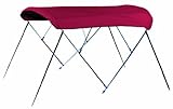 | ✚✚✚ Round Tube Stainless Steel Bimini Top Kit, Jockey Red Sunbrella (8'L 48"H 79-84"W) Round Tube Stainless Steel Bimini Tops are Made in the USA by Carver Industries. Carver is the leading bimini top manufacturer on the market. Their tops are made using only the highest quality components, and you can be assured they will last for years to come. The bimini is constructed of top quality stainless steel tubing with stainless steel fittings. Everything you need is included - canvas, hardware, frame, and installation instructions. The bimini top also comes with a free storage boot.
