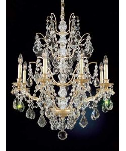 #Crystal:Legacy, Finish:Golden Birch, Light Bulb:(8)60w CA10 Cand C Incand Bordeaux 8 Light Chandelier. Inspired by the opulent tastes of the court of Louis XIV in seventeenth-century France, Bordeaux is trimmed with a medley of Venetian crystal from our Legacy Collection and Heritage Handcut crystal. Includes 40' chain and 150 wire for hanging. Schonbek products and prices shown are valid for North American customers and shipments (110v) only.