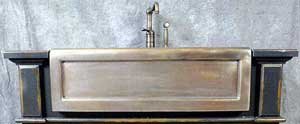 Elite Bath "Chamelon" Apron Front Farm Sink - FS32?Solid Bronze Apron Front Farm Sink. 32-1 2 inches x 22-1 4 inces x 10 inches O.D. 30 inchesx 18 inchesx9-1 2 inches I.D. Shown in Traditional Dark Bronze with smooth apron front. FS32