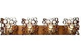 | ✚✚✚ Varaluz 193B04 Contemporary / Modern Four Light Bathroom Fixture from the Fascination NV Collec, Hammered Ore Contemporary / Modern 4 Light Bathroom Fixture Contructed of Recycled Material from the Fascination HO Collection Breathtaking...that's what came to mind when we saw the ruins of an old Nevada mine at sunset. The walls had been constructed of wine bottles and mud. All those old bottles arranged so perfectly and capturing the sunlight, what better inspiration for a lighting family? We mimicked the bottle ends with recycled steel circles of varying sized filled with recycled glass discs. Rarely before has a design based in "old" seemed so powerfully new. Features: Steel has 70% or more recycled content Recycled glass Low VOC finish Product Specifications: Shade Detail: Recycled Half Frosted Cylinders, Recycled Bottle Glass Width: 32 Height: 8 Extension: 4.5 Weight: 13 Backplate Width: 28.5 Backplate Height: 4.5 Bulb Type: G9 Halogen Number of Bulbs: 4 Watts Per Bulb: 50 Bulb Included: Included UL Listing: Dry Suggested Room: Bathroom Warranty: 1 Year