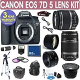 | ✚✚✚ Canon EOS 7D + Canon 18-55mm Lens + Canon 55-250mm Lens + Canon 50mm Lens + .40x Fisheye Lens + 2x Telephoto Lens + 3 Year Celltime Warranty Repair Contract