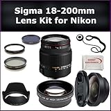 Sigma 18-200mm f/3.5-6.3 II DC OS HSM Lens Kit for Nikon Digital EOS. Includes: Sigma 18-200mm Lens, 0.45X Wide Angle Lens, 2X Telephoto Lens, Lens Cap, Lens Hood, Lens Cap Keeper, 3 Piece Filter Kit (UV-FLD-CPL) and Microfiber Cleaning Cloth